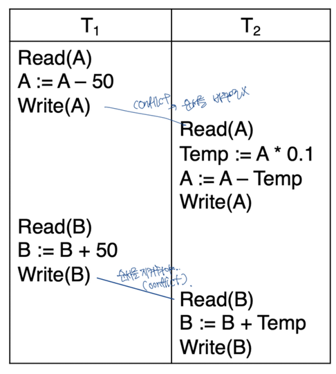 → ๊ฒฐ๊ณผ์ ์ผ๋ก ์ค์ผ์ค 6(serial schedule)๊ณผ ๊ฐ์ ์ค์ผ์ค์ด ๋์ค๊ฒ ๋จ.